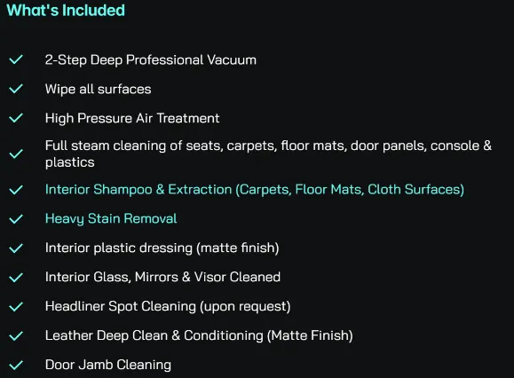 Interior Steam & Shampoo Detail (2.5 Hours)